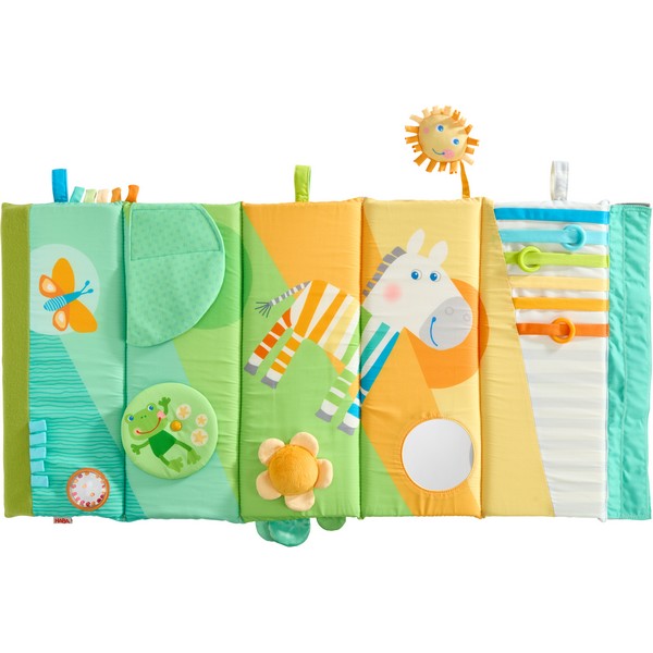 De Ontdekkingsrol Zebra is een echte vier-in-één alleskunner die kleintjes uitnodigt om te ontdekken, te bewegen en te spelen. Je kunt hem gebruiken als kruiprol om de eerste kruipbewegingen te ondersteunen, maar ook als koker wanneer je hem rechtop zet, als comfortabel speelkleed wanneer je hem uitrolt, en zelfs als speels element aan de babybox. Dankzij de vrolijke zebra-print, felle kleuren en speelse patronen is de rol onweerstaanbaar aantrekkelijk voor nieuwsgierige kleintjes. Overal zijn leuke details te vinden die uitnodigen tot grijpen, voelen en luisteren. Zo bevat de rol piepgeluidjes, knisperfolie, een klein spiegeltje, verschillende texturen en nog veel meer verrassingen om te ontdekken. Terwijl kinderen omgaan met de rol, leren ze spelenderwijs om te bewegen, balans te houden en hun motoriek te verbeteren. Tegelijkertijd blijft het speelgoed door de vele elementen boeiend en uitdagend, zodat kleintjes zich niet snel vervelen. De Ontdekkingsrol Zebra biedt urenlang plezier, comfort en stimulatie in één handig, veelzijdig ontwerp.